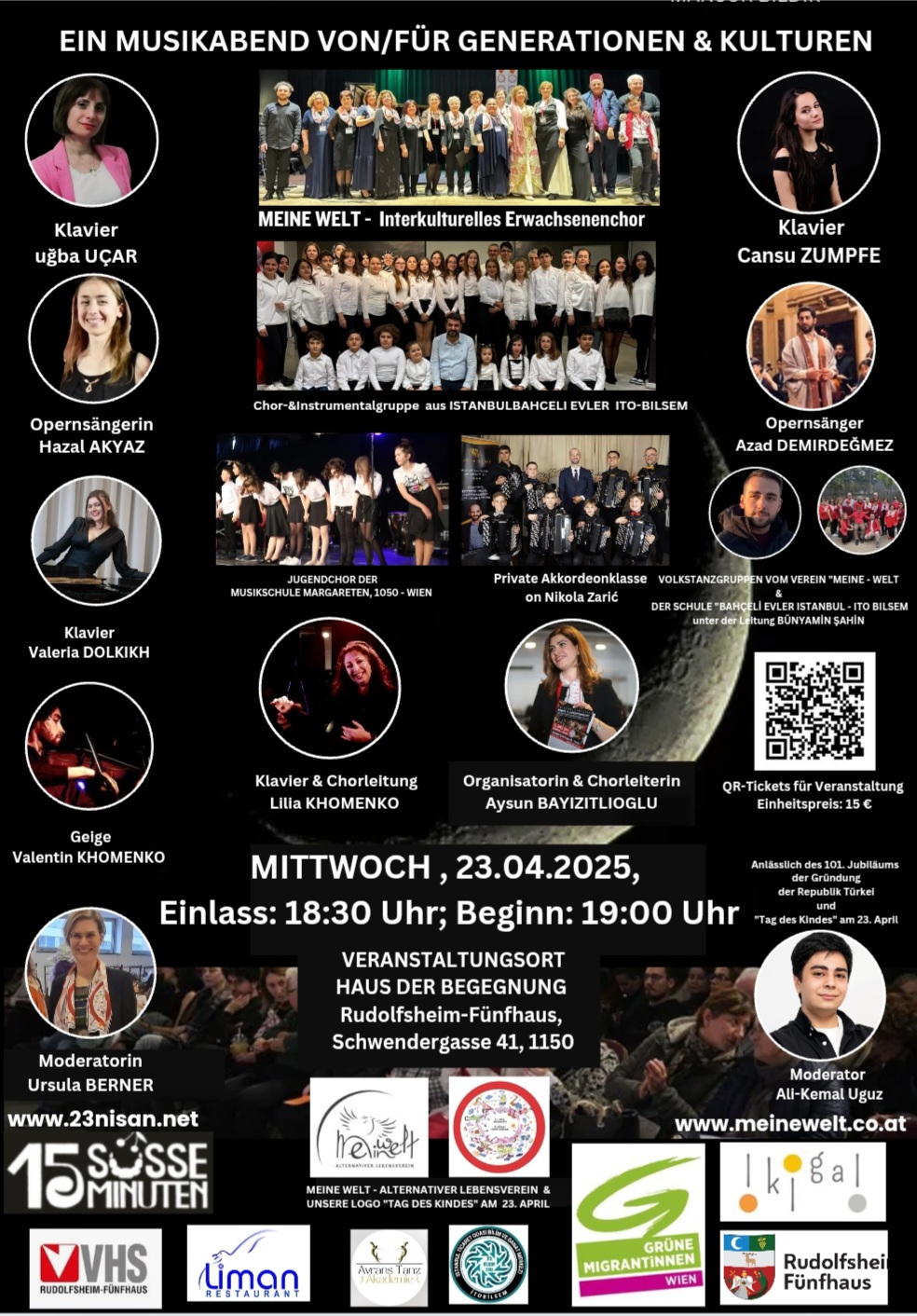 2025-"Interkulturelles Kinder-&Jugendkonzert zum 23. April" & "Ein Musikabend von/für Generationnen und Kulturen" am 23. April 2023 in der Wienerstadthalle -Halle E, 1150-Wien
