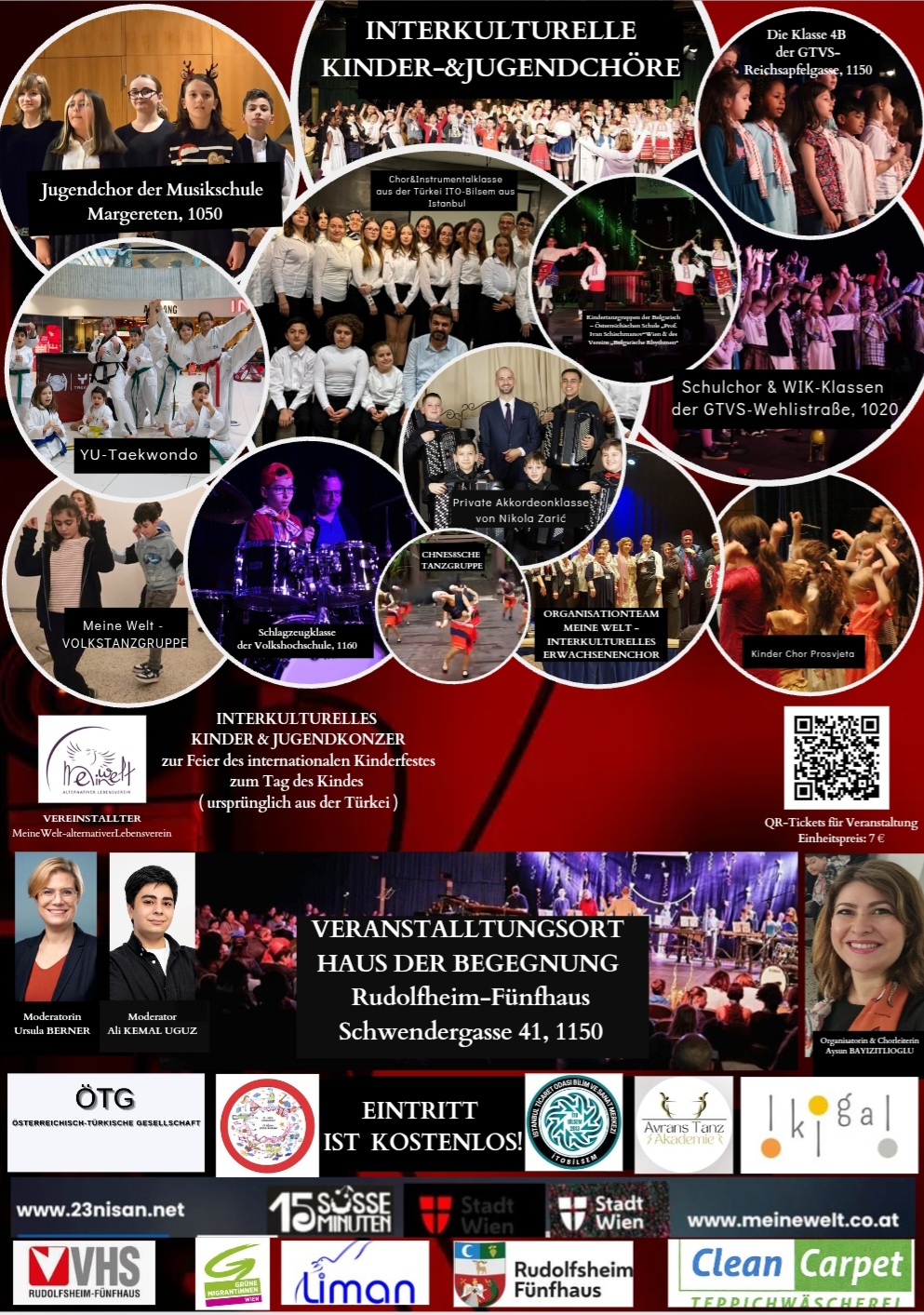 // 2025- 23 Nisan ' a "Çok kültürlü Çocuk ve Gençlik Konseri " & 23 Nisan'a özel Akşam Konseri: "Kuşakları ve Kültürleri Buluşturan Müzik Dinletisi", Wienerstadthalle-Haale E, 1150-Viyana